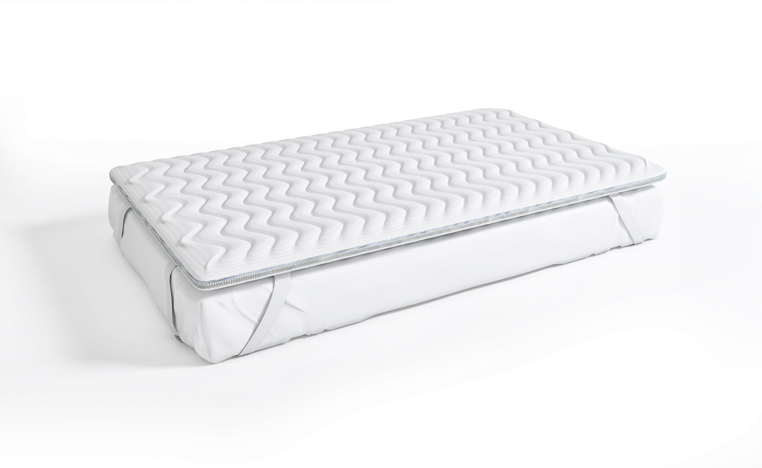 Pokrowiec wykonany został z antyalergicznej dzianiny typu Jersey, pikowanej włóknem klimatycznym, które poprawia cyrkulację powietrza i pomaga utrzymać optymalną temperaturę przez całą noc. Dodatkowo gumki w rogach utrzymują topper stabilnie na miejscu, nawet przy intensywnym użytkowaniu.