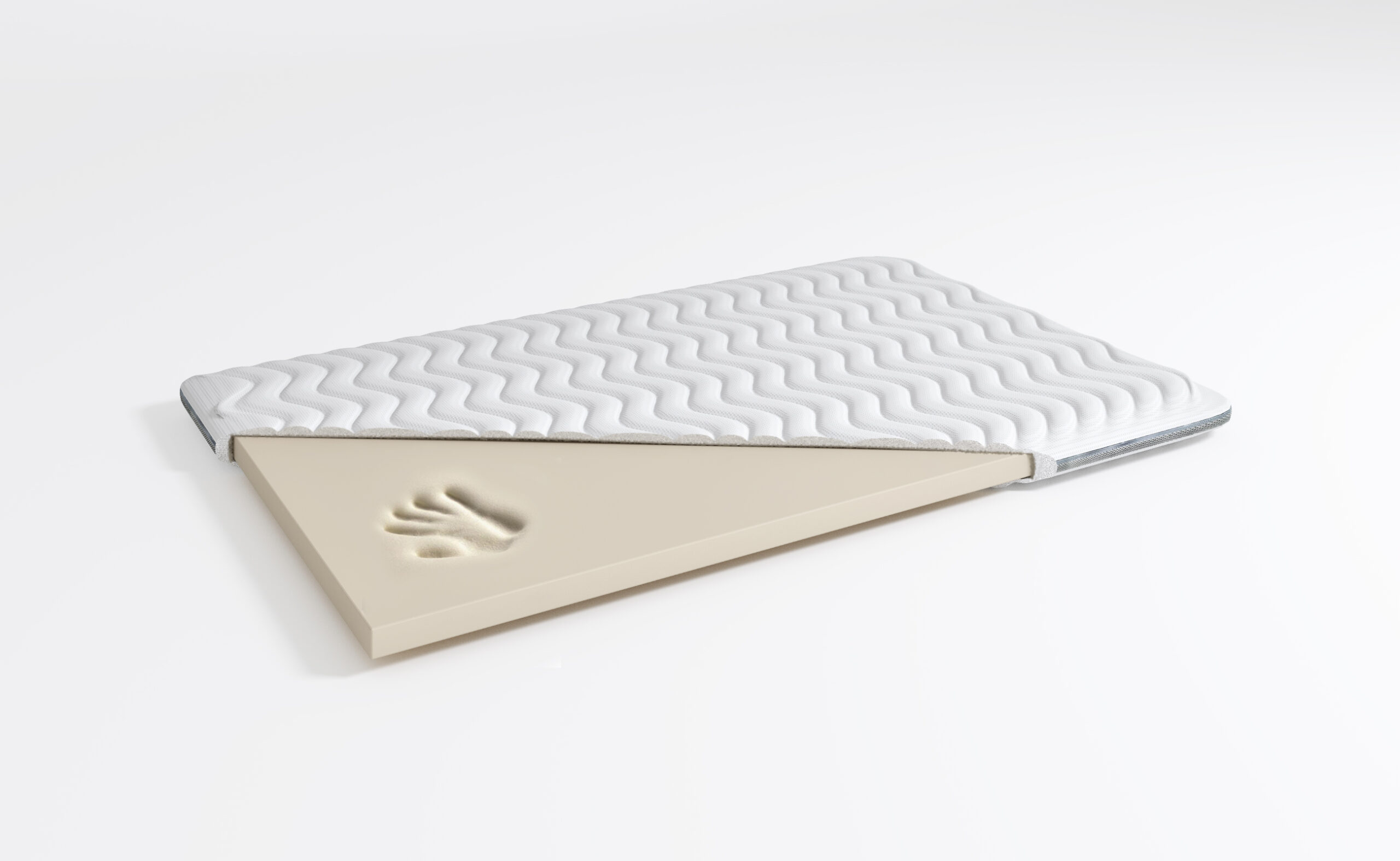 Termoelastyczna pianka z pamięcią kształtu Visco reaguje na temperaturę i nacisk, dopasowując się precyzyjnie do sylwetki. Redukuje nacisk na stawy i kręgosłup, co sprzyja rozluźnieniu mięśni i spokojnemu, regeneracyjnemu snu. Topper idealnie sprawdza się jako warstwa wyrównująca i poprawiająca komfort zbyt twardych lub niewygodnych powierzchni.